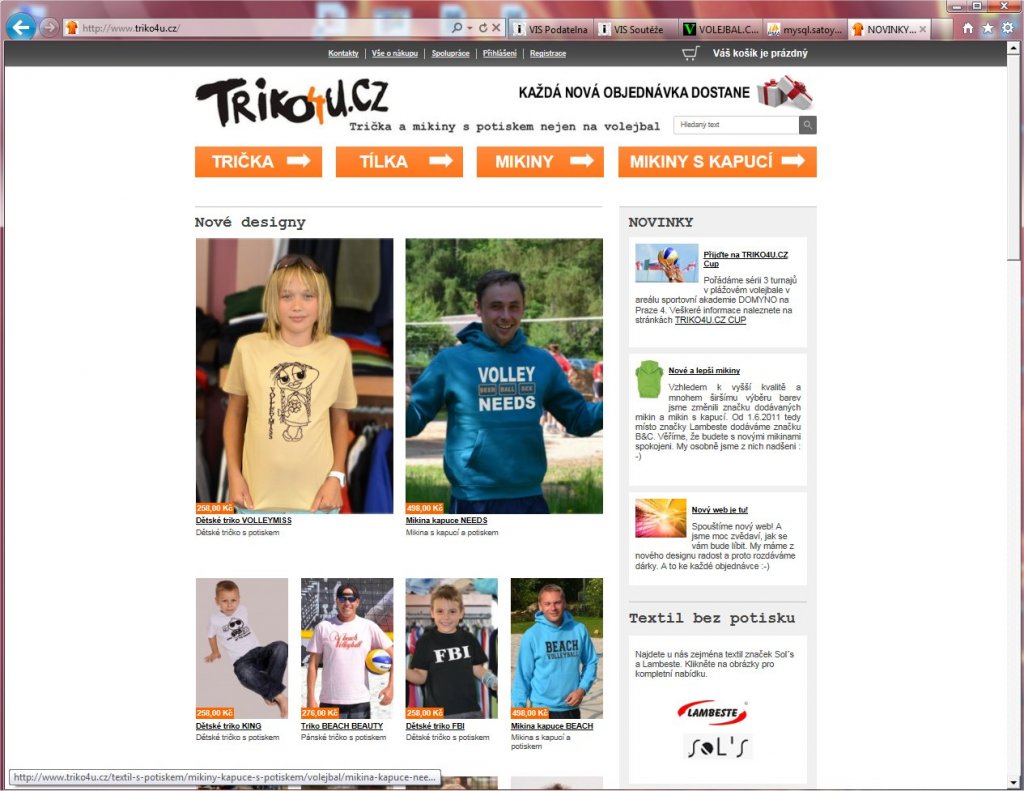 Spouštíme nový web TRIKO4U.CZ, trička a mikiny nejen na volejbal a jsme moc zvědaví, jak se Vám bude líbit. Prvním 100 zákazníkům k objednávce dáváme dárky ZDARMA! Tak se koukněte a třeba se Vám něco bude líbit.